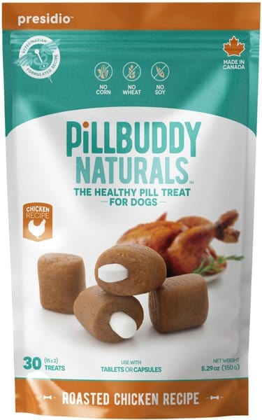 Pill Buddy Naturals Roasted Chicken Soft & Chewy Dog Treats are the perfect solution for pet parents who struggle to give their furry friends medicine. Made with high quality ingredients in small batches, these soft and malleable treats easily conceal any sized pill or capsule. The natural oils in the recipe make it easy for your pup to swallow without tasting any bitter medicine. Each treat is individually wrapped in packaging to ensure maximum freshness and convenience, especially when traveling.