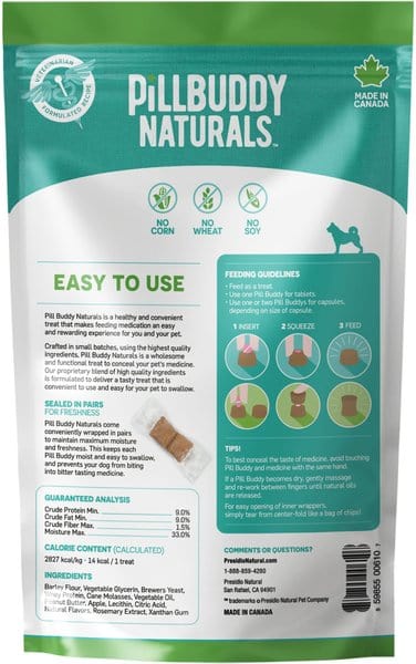 Make giving your furry friend their medication a breeze with Pill Buddy Naturals Peanut Butter & Apple Soft & Chewy Dog Treats. These treats are specially designed to easily accommodate any size of medicine, making it a stress-free experience for both you and your pup. The natural oils in these treats also help to mask the bitter taste of medicine, ensuring your furbaby swallows it without any fuss. Each treat is individually wrapped in compostable packaging to maintain freshness and make it convenient for travel. With options for meat-based, chicken-free, and vegetarian recipes, there¡¯s something for every four-legged family member¡¯s dietary needs.