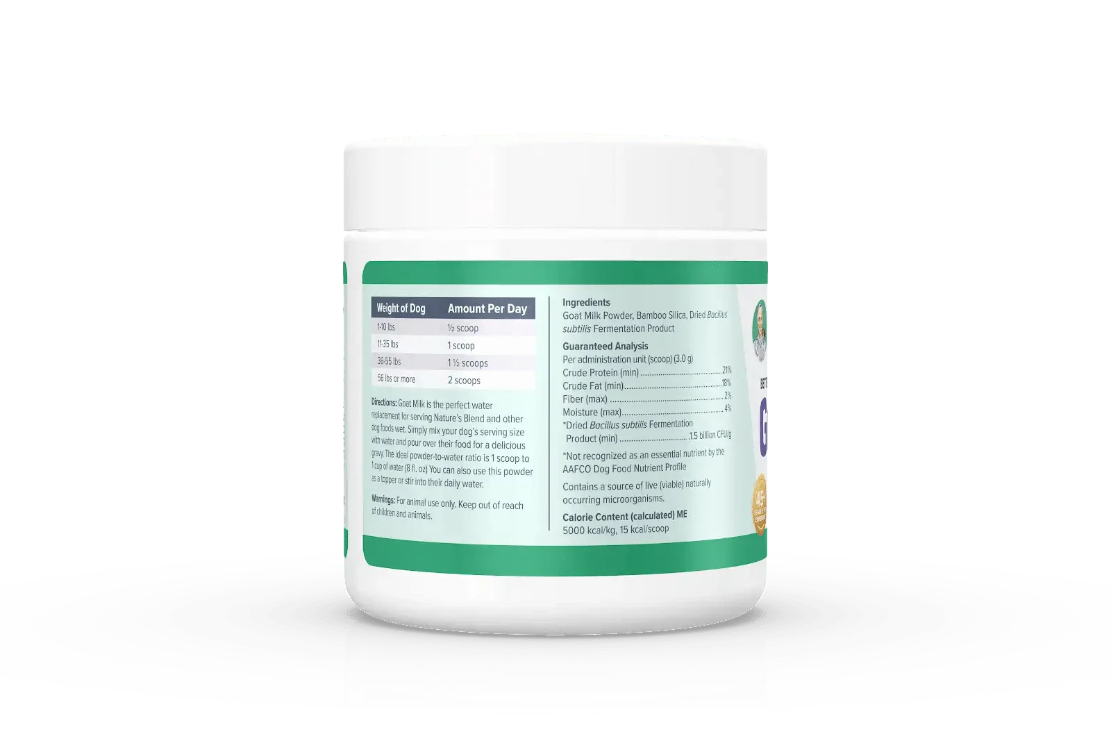 Support your dog¡¯s healthy skin, balanced gut, strong muscles, and healthy immune system with protein-rich goat milk and digestion-supporting probiotics! Simply mix this powdered formula with water and pour over their food for a delicious topper. Your dog will love the flavor (and you¡¯ll love improvements to their digestion and overall wellbeing).
