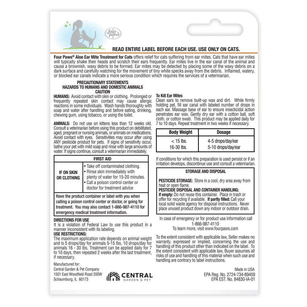 - Ear mite drops formulated for cats and kittens older than 12 weeks