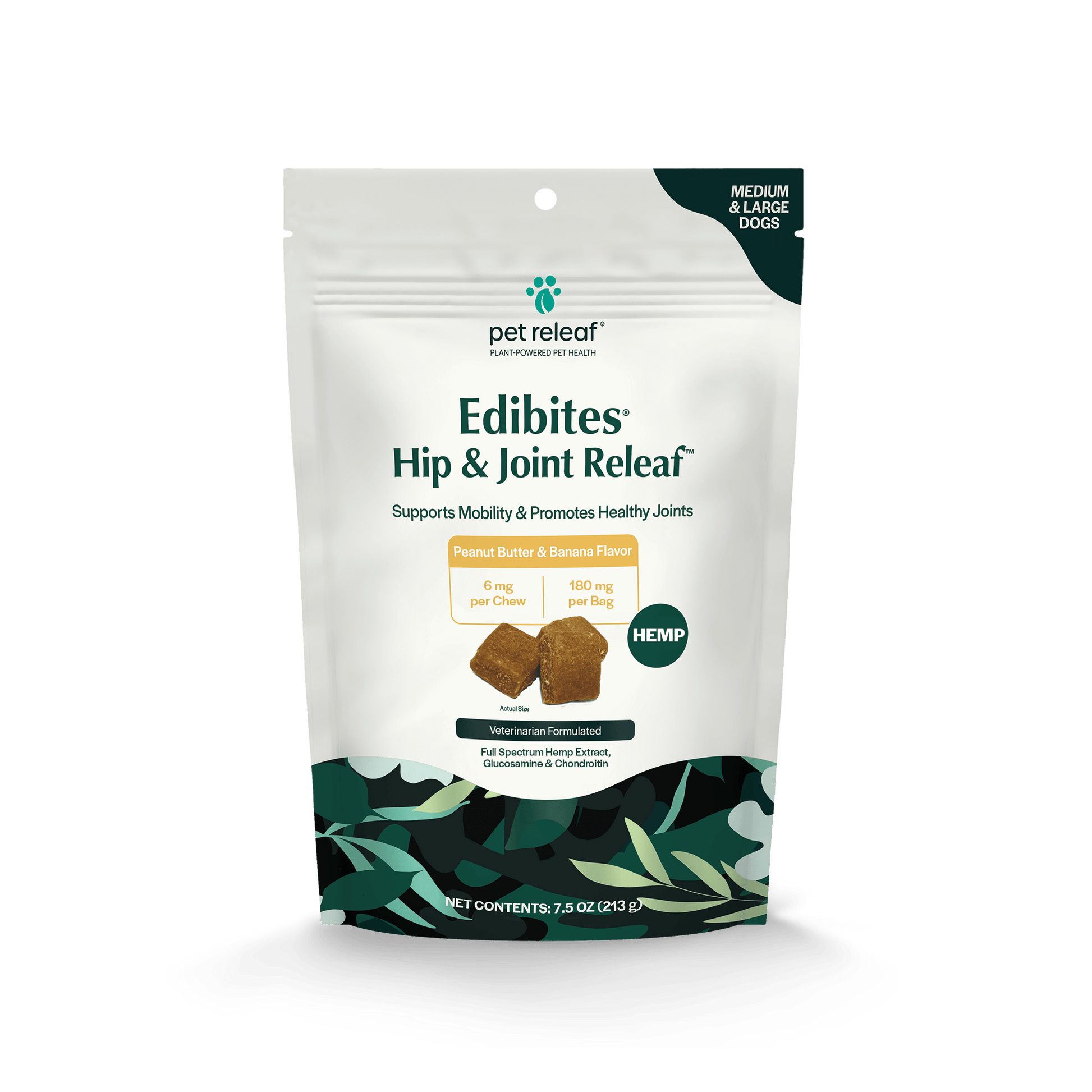 Pet Releaf Hip & Joint Releaf Edibites for Medium & Large Dogs Peanut Butter & Banana Flavor