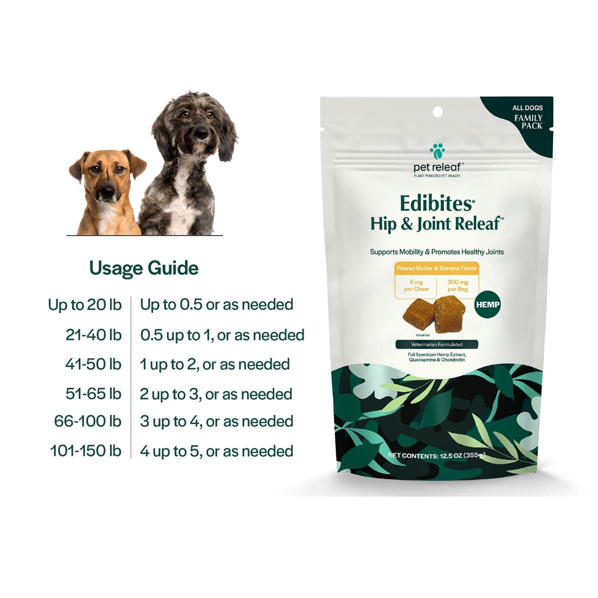 Pet Releaf Hip & Joint Releaf Family Size Edibites Peanut Butter & Banana Flavor for Dogs