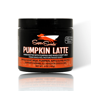 The Super Snouts Pumpkin Latte Dog & Cat Digestive Supplement supports your furbaby¡¯s digestive health for a happy tummy. It¡¯s made with just five ingredients, all selected to boost gut health. Whole goat milk coats the tummy and provides nutritional support to the immune system. Pumpkin is su-paw nutritious and full of immune-boosting ingredients like fiber and potassium. Apple fiber is a soluble fiber that supports and maintains lower bowel function. Organic agave inulin is an organic prebiotic fiber to support your best friend¡¯s tummy health. Ceylon cinnamon promotes healthy digestion and helps your furbaby to absorb nutrients and properly digest food. All of these ingredients are packed into this supplement, which you can mix with water, sprinkle on food or make into treats.