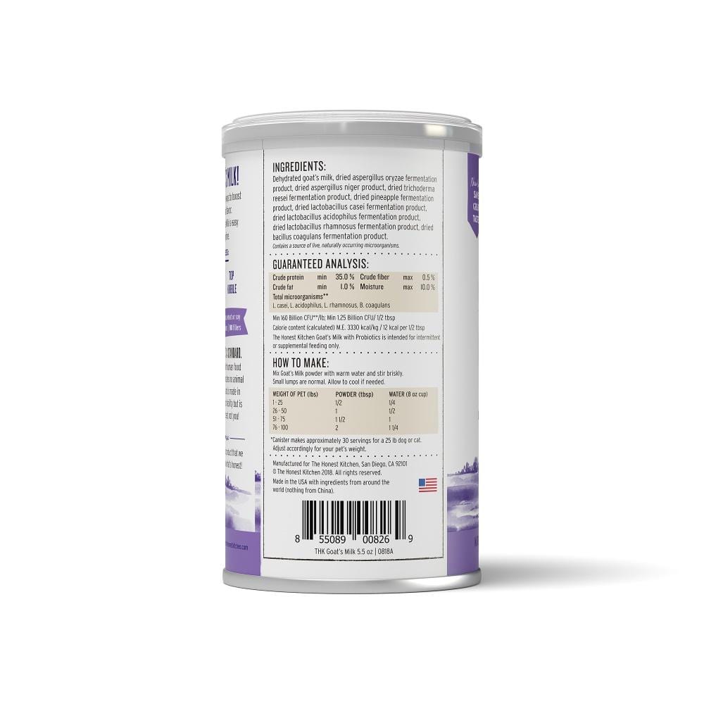 Made from highly-digestible dehydrated goat¡¯s milk plus 5 billion active probiotics and digestive enzymes, goat¡¯s milk is especially great for puppies and kittens and helps support their digestion, immune systems, and well-being. Simply mix this packet with warm water to give your pet a mouthwatering drink, pour over dry food, or use it to rehydrate our dehydrated foods.